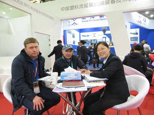 新樂華寶在此次展會中攜四軸全自動高速高配纏繞膜機(jī)組和預(yù)拉伸復(fù)卷機(jī)參展。豐富的產(chǎn)品賣點創(chuàng)新的技術(shù),以及業(yè)界好評度,不僅讓有意向的客戶直接進(jìn)展位洽談,而且還吸引了大量參展的客戶駐足觀看。在為期四天的展會現(xiàn)場,新樂華寶始終門庭若市,成為本展館的焦點所在。