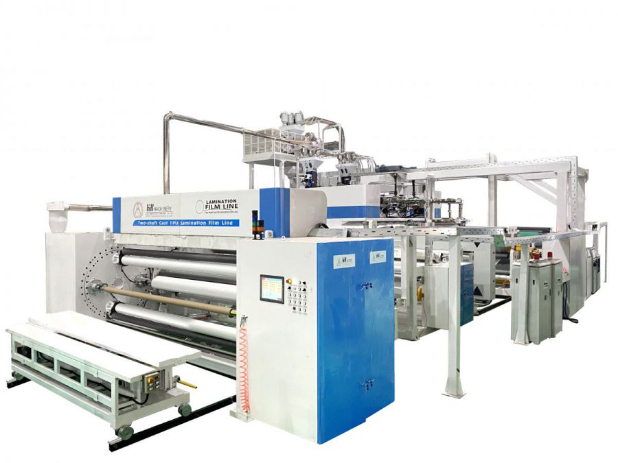 本生產(chǎn)線主要使用TPU脂肪族原料生產(chǎn)透明TPU車(chē)衣基材膜,也可以在原料中添加不同顏色的色母生產(chǎn)改色TPU車(chē)衣基材膜。應(yīng)用特殊設(shè)計(jì)的螺桿和流延成型技術(shù),配備雙面BOPET保護(hù)膜自動(dòng)放卷裝置、膜片在線自動(dòng)測(cè)厚、全自動(dòng)收卷等先進(jìn)技術(shù),實(shí)現(xiàn)生產(chǎn)線的自動(dòng)化穩(wěn)定運(yùn)行,生產(chǎn)高品質(zhì)TPU車(chē)衣基材膜。此基材膜通過(guò)后續(xù)的涂膠及涂覆表面處理,生產(chǎn)出高品質(zhì)的車(chē)衣膜。