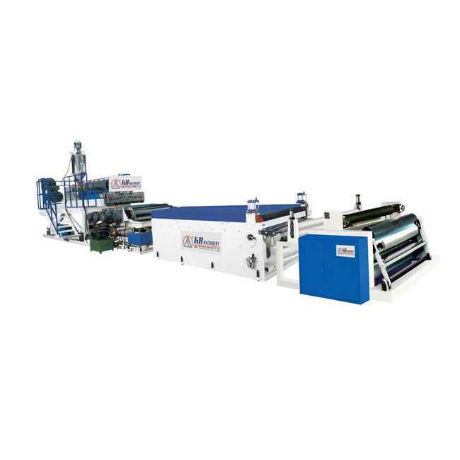 此生產(chǎn)線(xiàn)采用先進(jìn)的流延軟膜表面成型新技術(shù),生產(chǎn)EVA/PU環(huán)保軟膜片。