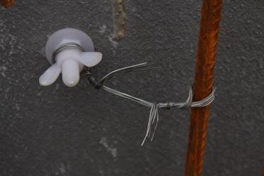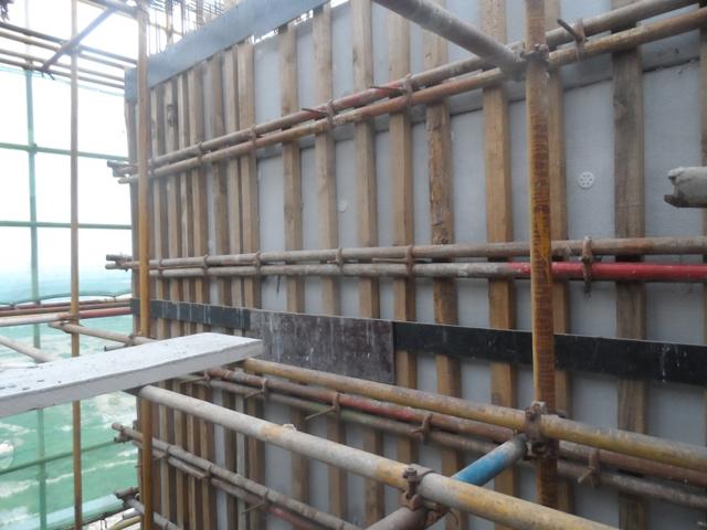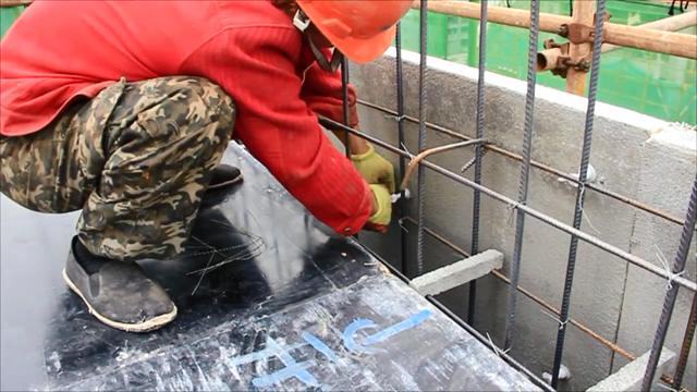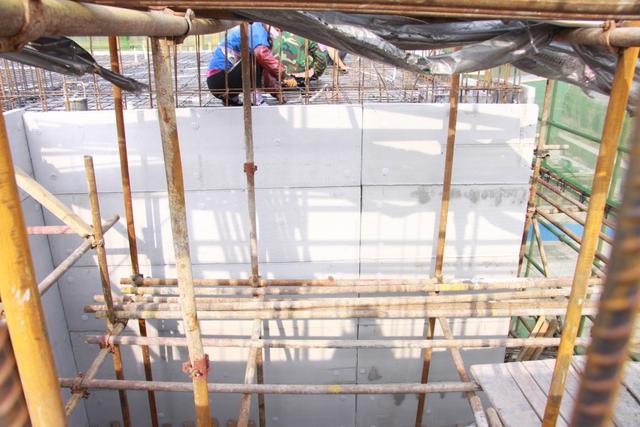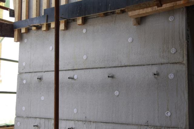 用扎絲將鋼筋與保溫板預(yù)埋件連接,墻內(nèi)部使用常用水泥支撐,支撐住FS保溫模板和外墻內(nèi)模板。