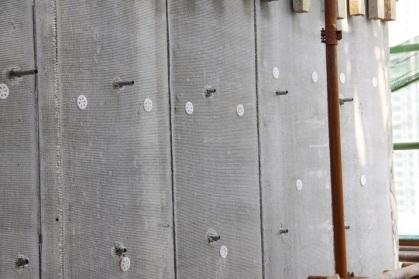 采用工廠化加工將保溫板兩側(cè)增加5-20mm砂漿面層,作為住宅樓主體施工時(shí)外墻模板,將主體施工與外墻保溫,合二為一,縮短工期,降低施工成本。