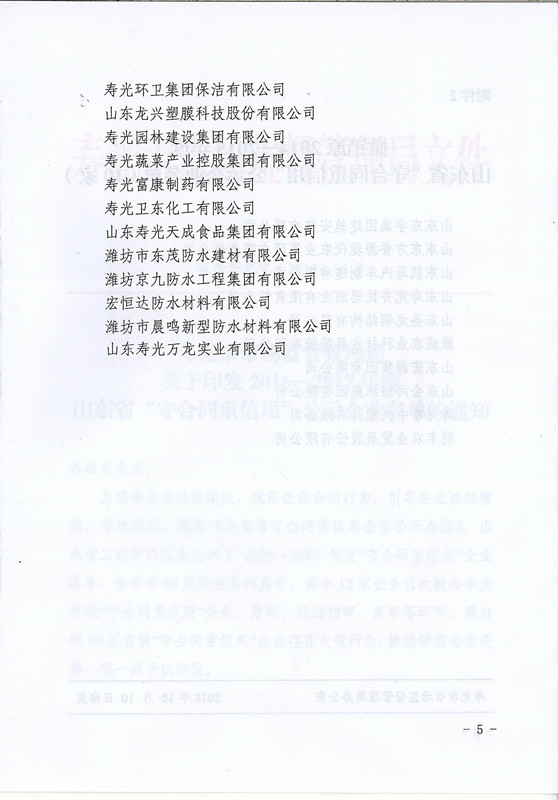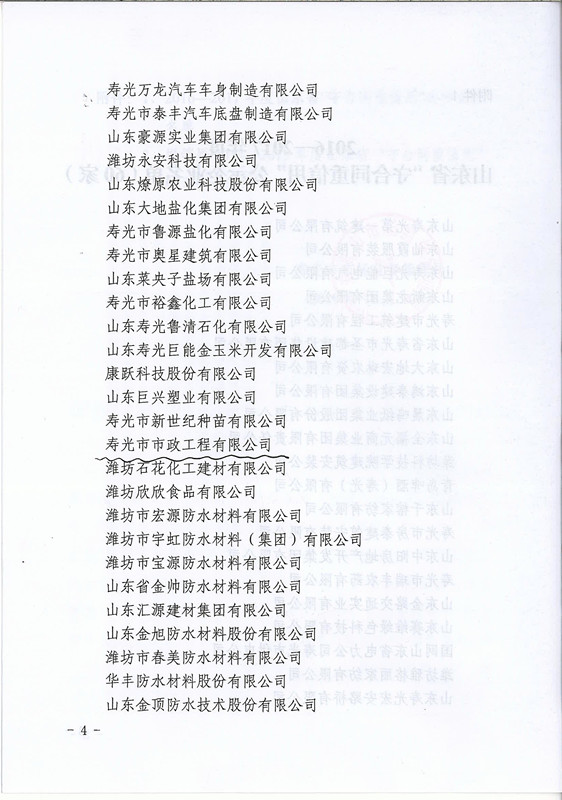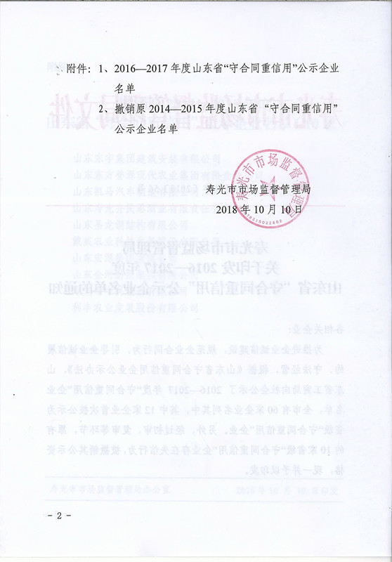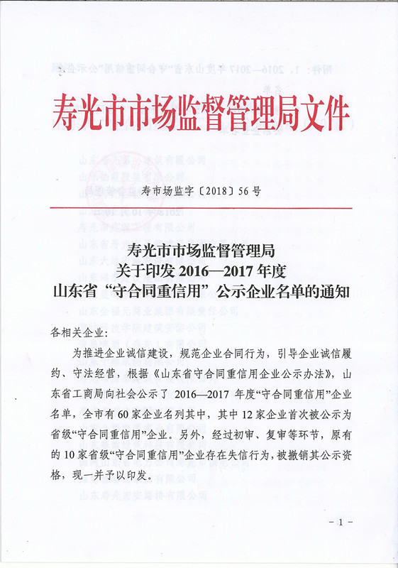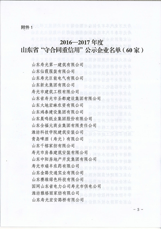 2016-2017年度山東省守合同重信用公示企業(yè)名單