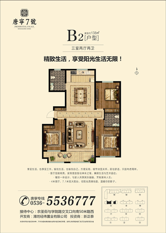 無論在地段、環(huán)境、配套、建筑、景觀、戶型設(shè)計以及物業(yè)管理等方面,都是壽光首屈一指的。擁有唐寧7號不僅是您身份和檔次的象征,也必將是您居住和投資的**佳選擇!