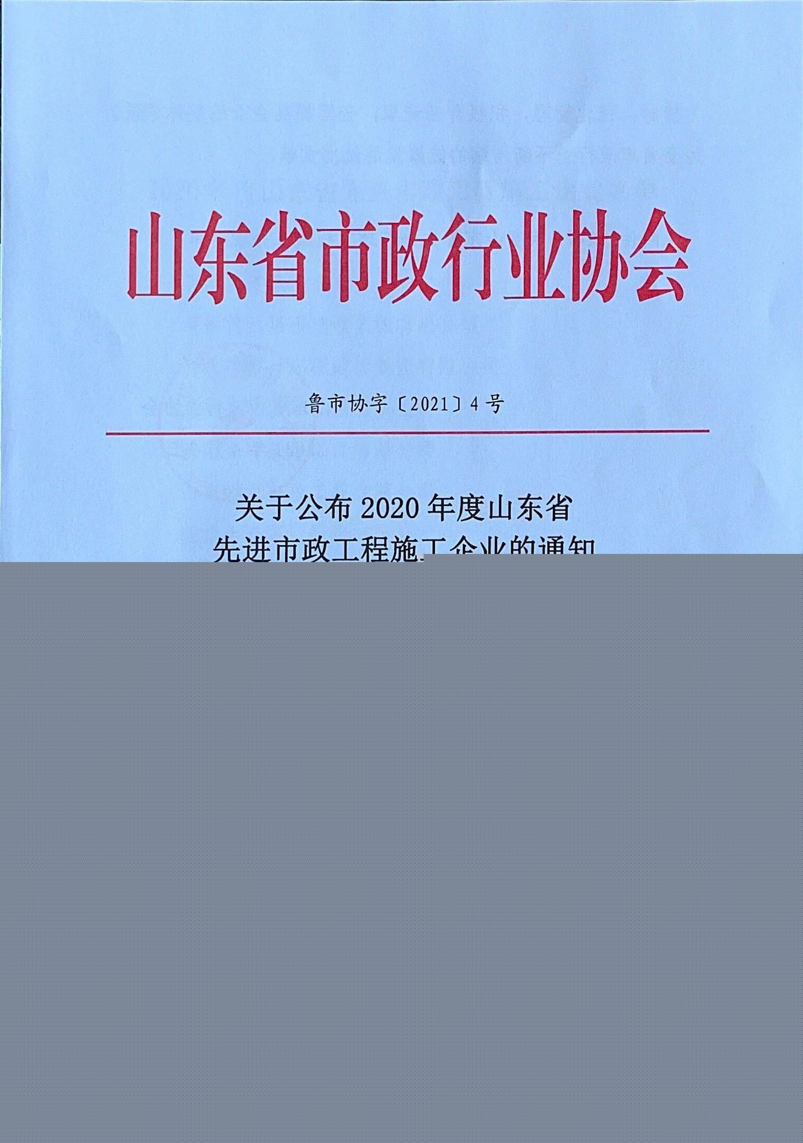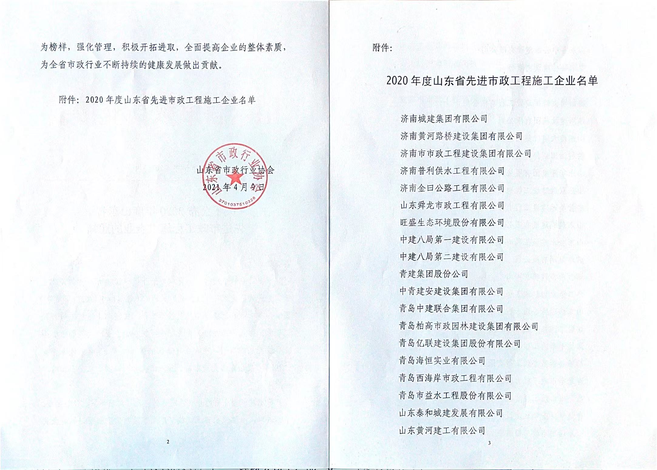 日前,2020年度山東省**市政工程施工企業(yè)名單公布,我公司等55家單位榜上有名。 此次評選,是山東省市政行業(yè)協(xié)會根據(jù)《山東省**市政工程施工企業(yè)評選辦法》相關(guān)標(biāo)準(zhǔn),結(jié)合企業(yè)業(yè)績及鼓勵中小企業(yè)盡快發(fā)展的原則組織進(jìn)行的,三年一屆。隨著此次山東省**市政工程施工企業(yè)榮譽的獲得,我公司自企業(yè)改制以來,獲得的市政行業(yè)同類省級殊榮已增至5項。