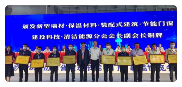 張永光院長、吳理侃副會(huì)長為山東省建筑節(jié)能科學(xué)技術(shù)獎(jiǎng)獲獎(jiǎng)單位頒發(fā)獎(jiǎng)牌