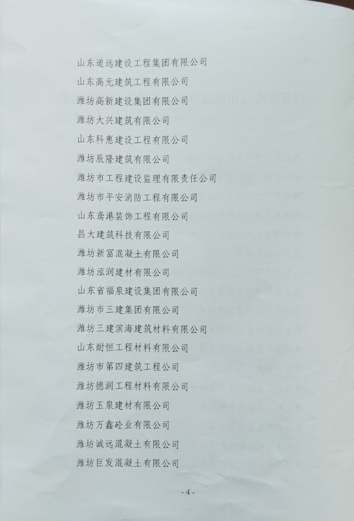 近日,濰坊市建筑業(yè)協(xié)會下發(fā)文件,公布了2022年度濰坊市建筑業(yè)協(xié)會優(yōu) 秀會員單位名單,我單位位列其中。此榮譽的獲得,充分體現(xiàn)了公司在我市建筑業(yè)的綜合競爭優(yōu)勢,彰顯了行業(yè)地位,是對公司從業(yè)人員素質、工程質量和企業(yè)管理水平等工作的肯定和認可。